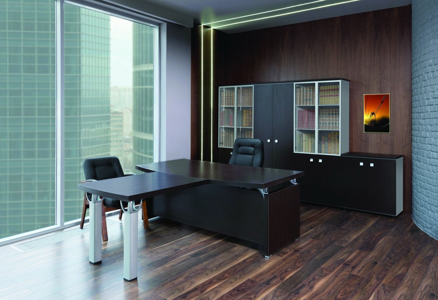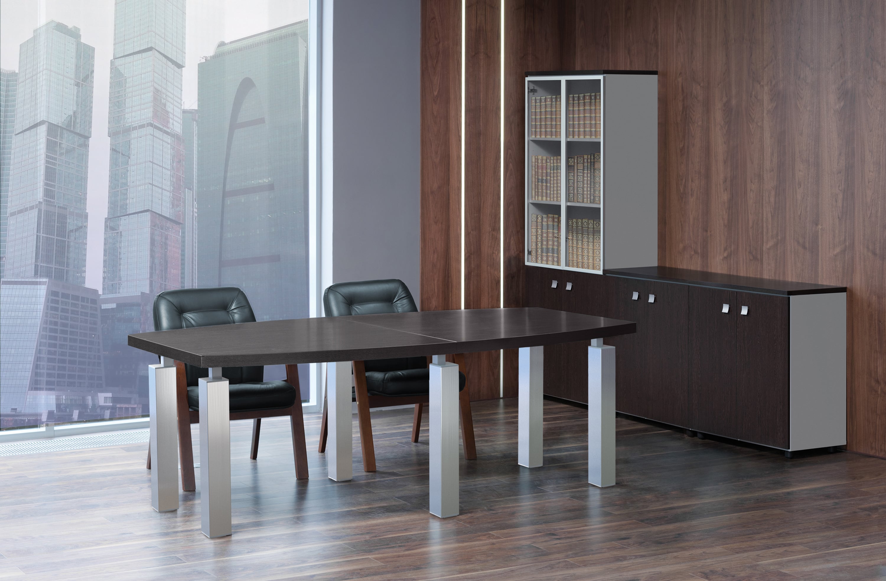 Интернет-магазин «Офисная-Мебели-Купить» предлагает вашему вниманию стильный и современный кабинет руководителя «Blackwood» в Санкт-Петербурге. Хотите создать в кабинете деловую атмосферу с нотками уюта? Серия «Blackwood» - это то, что вам нужно. Популярность этого комплекта в Санкт-Петербурге не удивительна. Он обладает множеством достоинств. Рассмотрим особенности и преимущества кабинета подробнее.